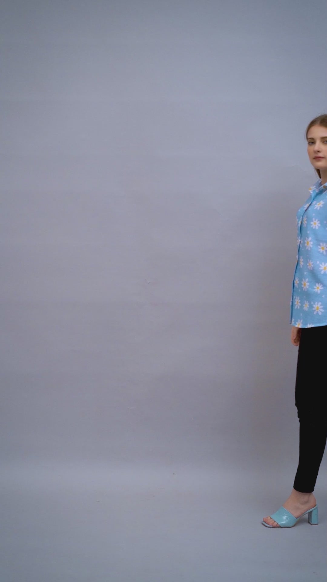 Pure Linen Daisy Print Button Front Women Shirt Tops by Brand Black Jack