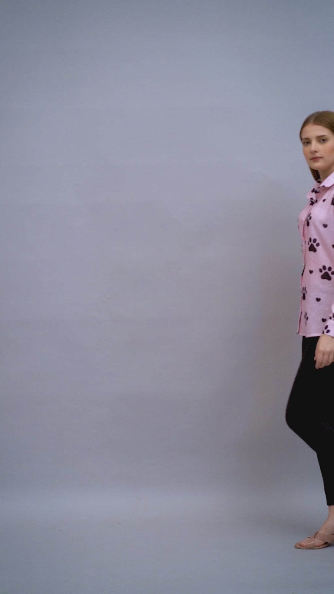 Pure Linen Pink Paw Print Long Sleeve Women Shirt Top by Brand Black Jack